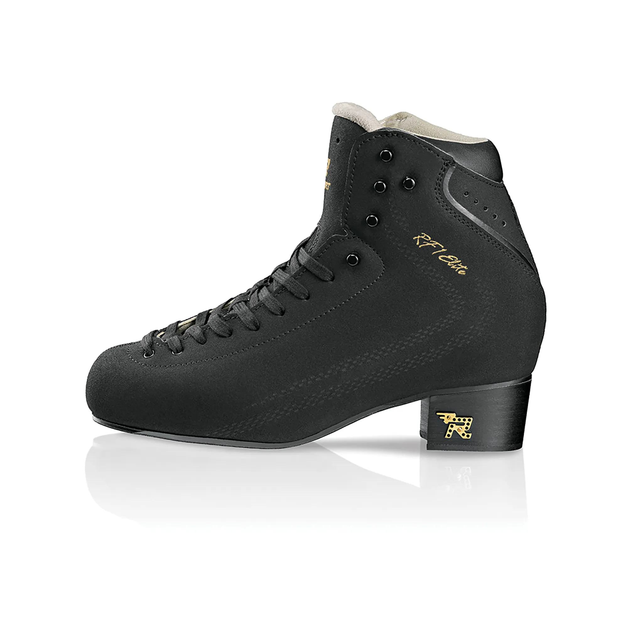 Beautifully redesigned RF1 Elite is the ultimate high end traditionally styled, Italian hand crafted leather boot for competitive skaters landing triple and quadruple jumps. It has a new full length lace holder on the tongue, a stronger, lighter sole, and features an extra upper hook for better securing laces. New multilayer soles integrating carbon fibre are stronger, lighter and moisture resistant to prevent blade movement, reduce fatigue and lengthen the life of the boots.